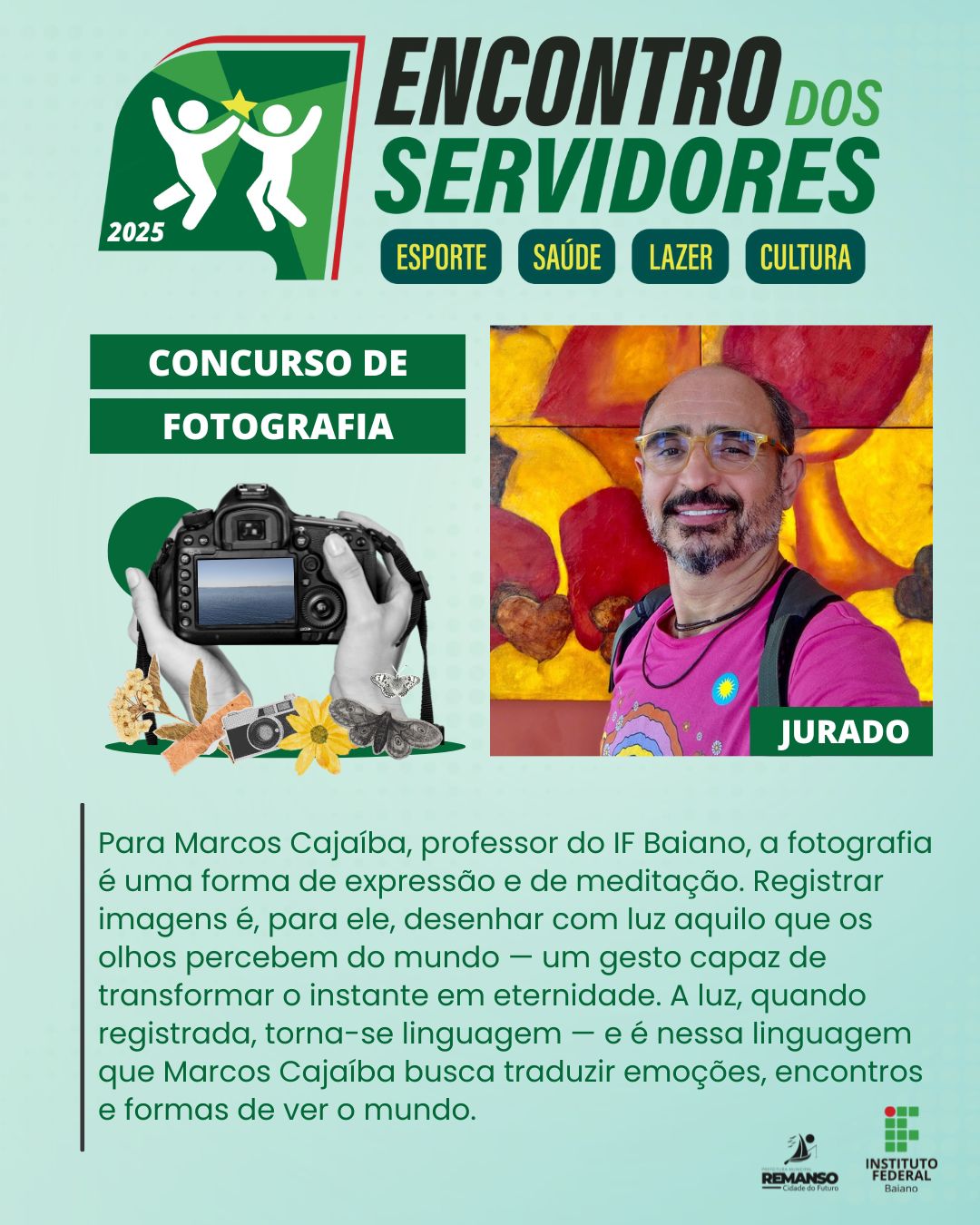 Pela primeira vez, o Encontro dos Servidores contará com um Concurso de Fotografia, abrindo espaço para que cada participante possa registrar e compartilhar diferentes perspectivas sobre nossa instituição e sobre o próprio evento.