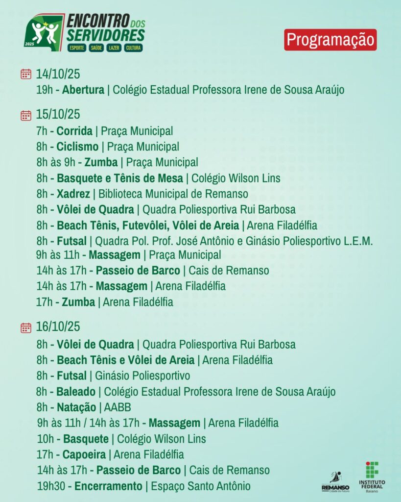 Nesta edição, a programação acontecerá na cidade de Remanso (BA), que em breve receberá um novo campus do IF Baiano — um símbolo de expansão e compromisso com a interiorização da educação pública, gratuita e de qualidade. O encontro em Remanso marca também a presença cada vez mais forte do Instituto em diferentes territórios, aproximando ainda mais a comunidade e reafirmando nossa missão de transformar vidas por meio da educação.